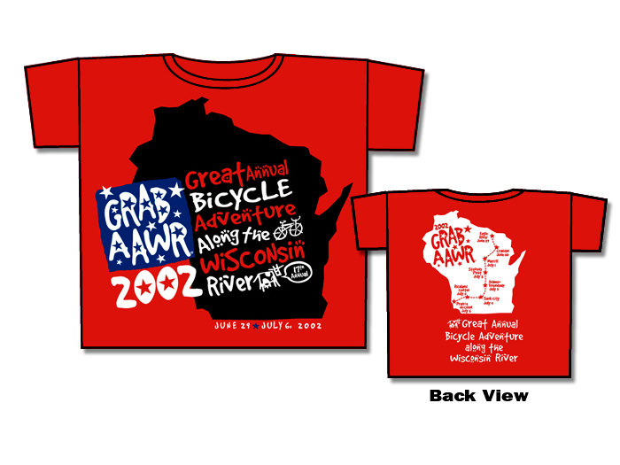 T Shirt design for GRABAAWR (Great Annual Bicycle Adventure Along the Wisconsin River) 2002.