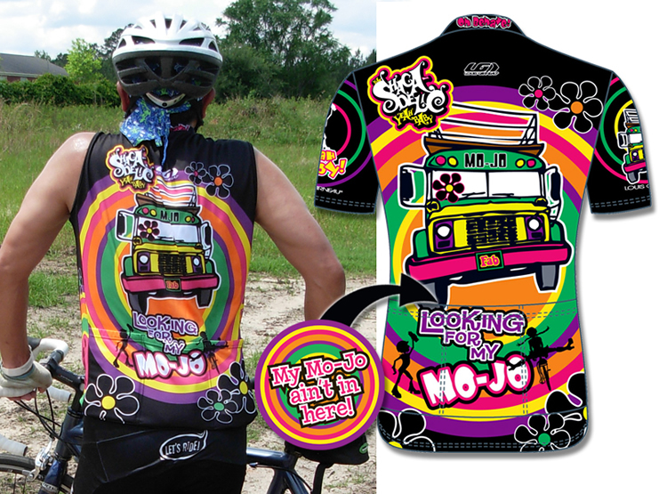 Back of Team Shagadelic jersey. Secret message shown is hidden in back pocket! There is also a coordinating