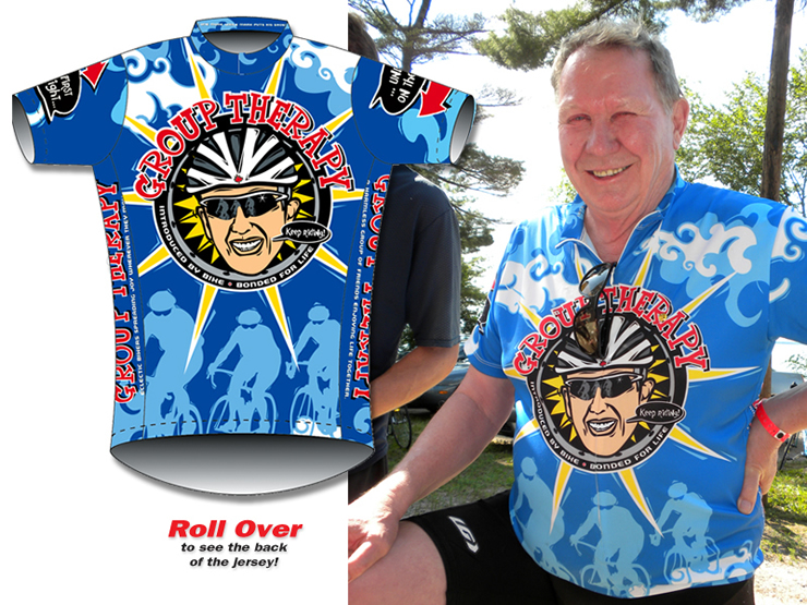"Group Therapy" jersey designed for a group of friends who are bondedby the love of biking and enjoying life,