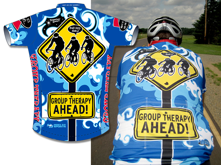 Back of Group Therapy jersey. To see the hidden message inside the back pocket, and some of the members