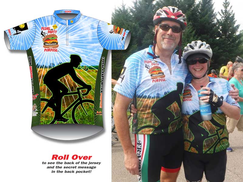 Jersey design for the 2016 Pedal and Party in Pardeeville with a Purpose! click here to see the back! see our website as well!